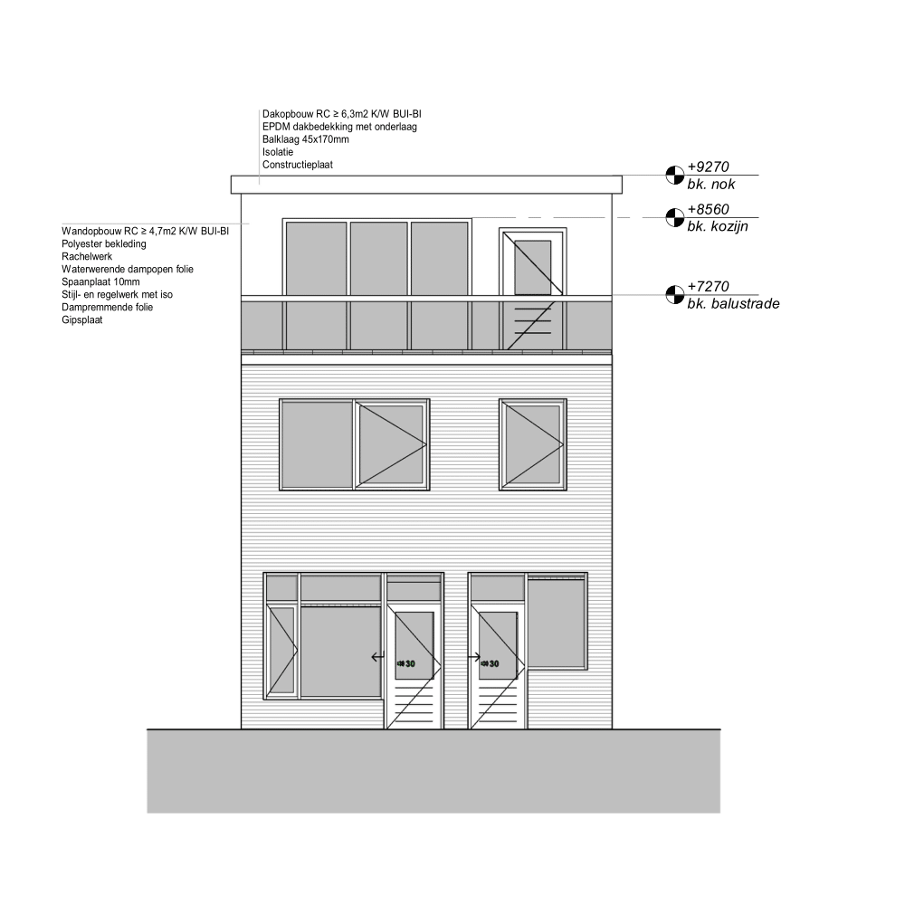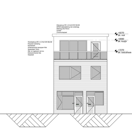 Bouwtekening dakopbouw/dakterras
